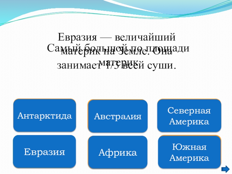 Евразия — величайший материк на Земле. Она занимает 1/3 всей суши.