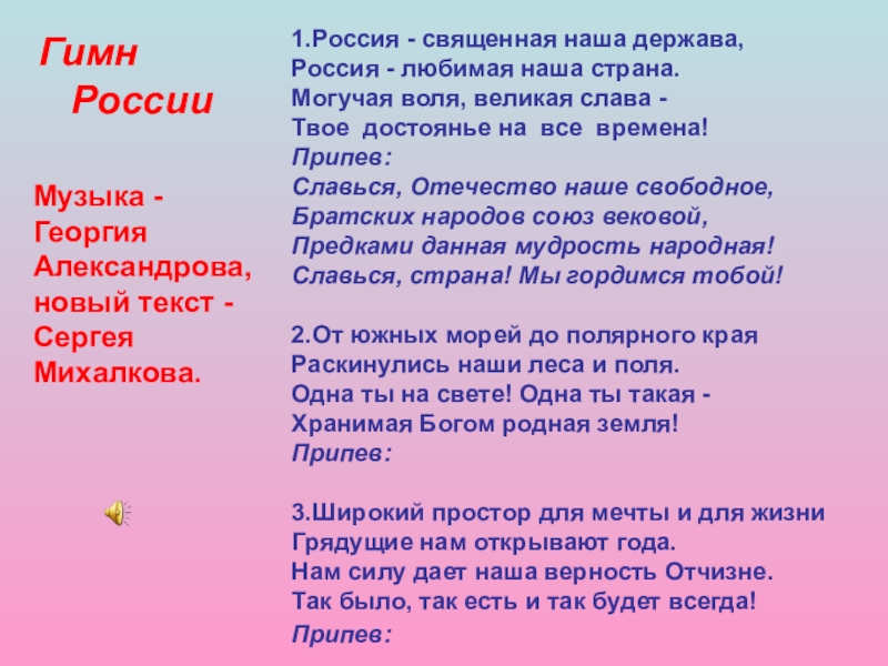Музыка - Георгия Александрова, новый текст - Сергея Михалкова.
