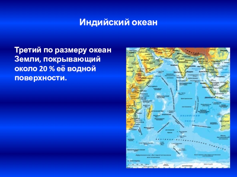 Третий по размеру океан Земли, покрывающий около 20 % её водной