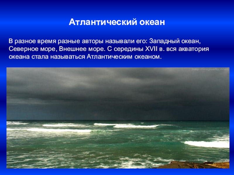 море, Внешнее море. С середины XVII в. вся акватория океана стала называться Атлантическим океаном.