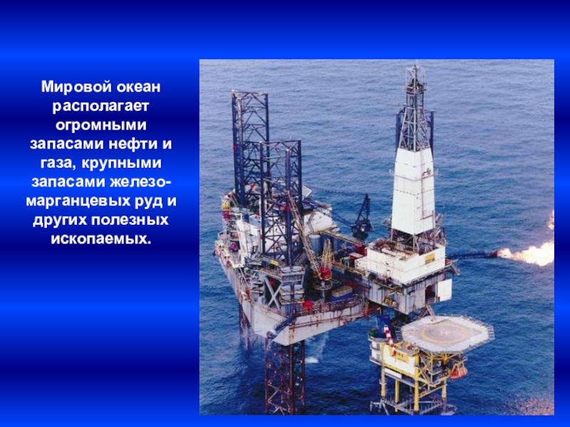 Мировой океан располагает огромными запасами нефти и газа, крупными запасами железо-