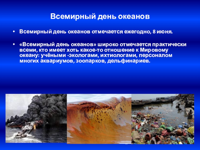 Всемирный день океанов отмечается ежегодно, 8 июня.