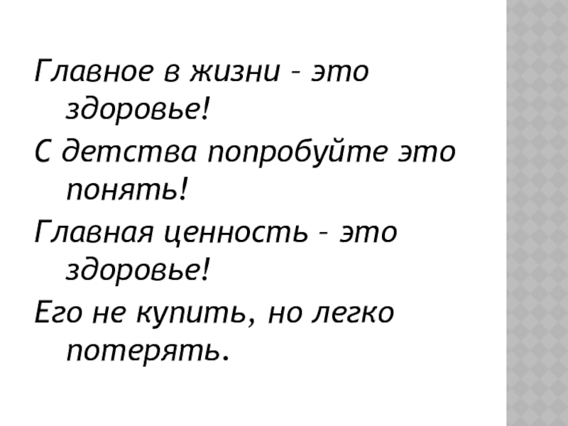 Главное в жизни – это здоровье! С детства попробуйте это понять!Главная ценность – это здоровье! Его не