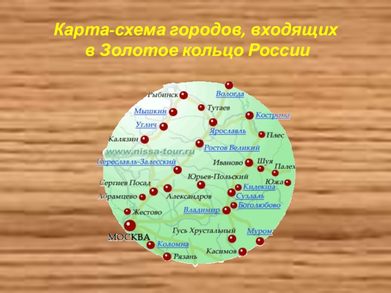 Слайд 3Карта-схема городов, входящих в Золотое кольцо России