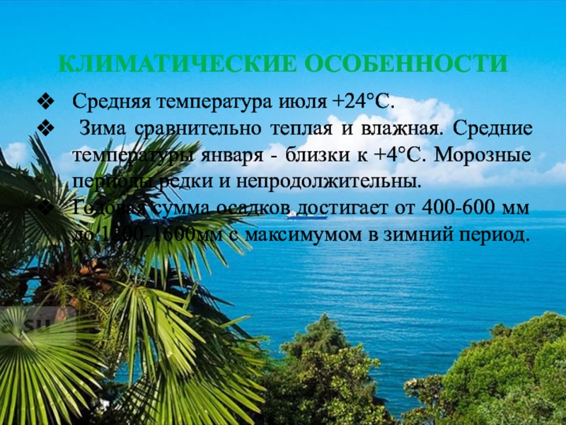Средние температуры января - близки к +4°С. Морозные периоды редки и непродолжительны.