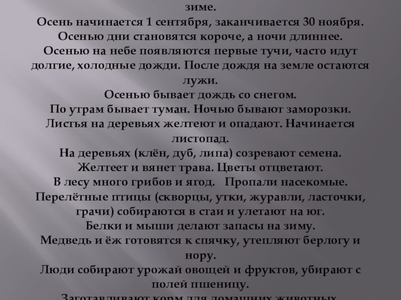 Осень наступает после лета. Осень природа готовится к зиме.