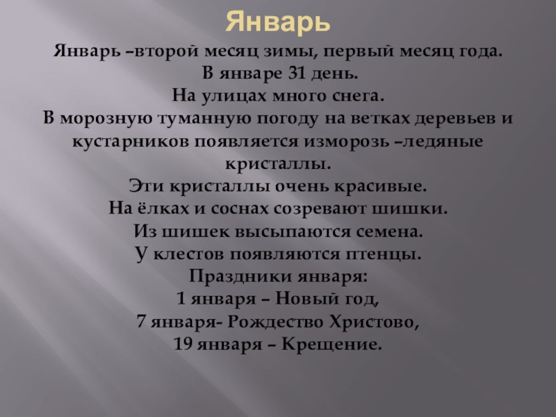 Январь –второй месяц зимы, первый месяц года.