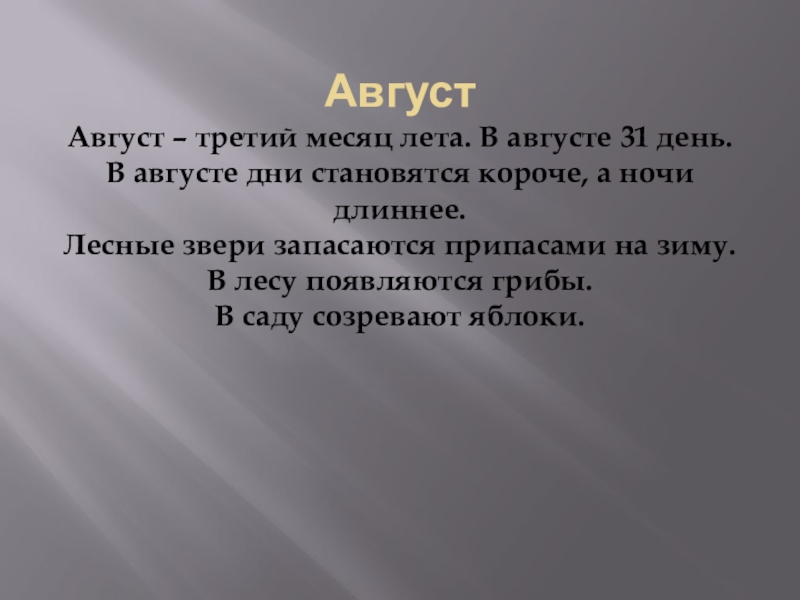 Август – третий месяц лета. В августе 31 день.