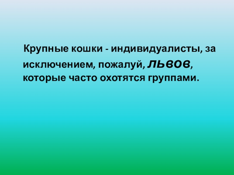Крупные кошки - индивидуалисты, за исключением, пожалуй, львов, которые