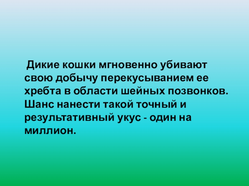 Дикие кошки мгновенно убивают свою добычу перекусыванием ее хребта в