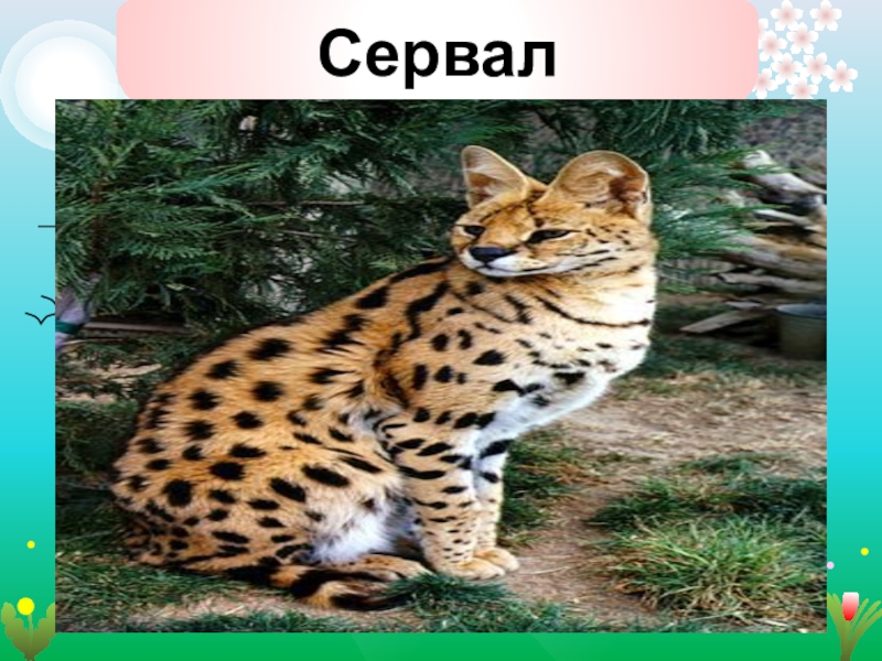 Сервал — стройная, длинноногая кошка средних размеров. Длина его