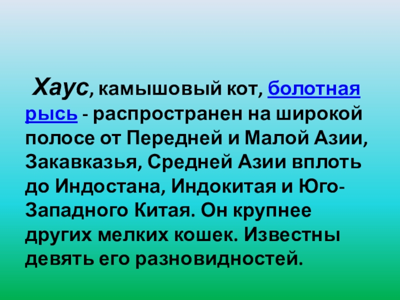 Хаус, камышовый кот, болотная рысь - распространен на широкой
