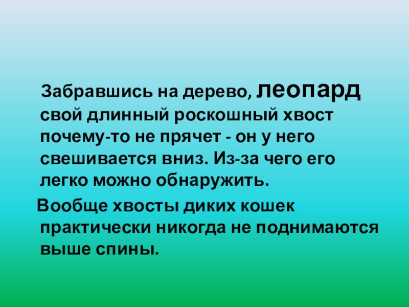 Забравшись на дерево, леопард свой длинный роскошный хвост почему-то