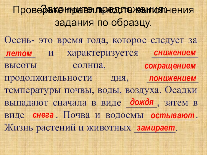 Проверьте правильность выполнения задания по образцу.