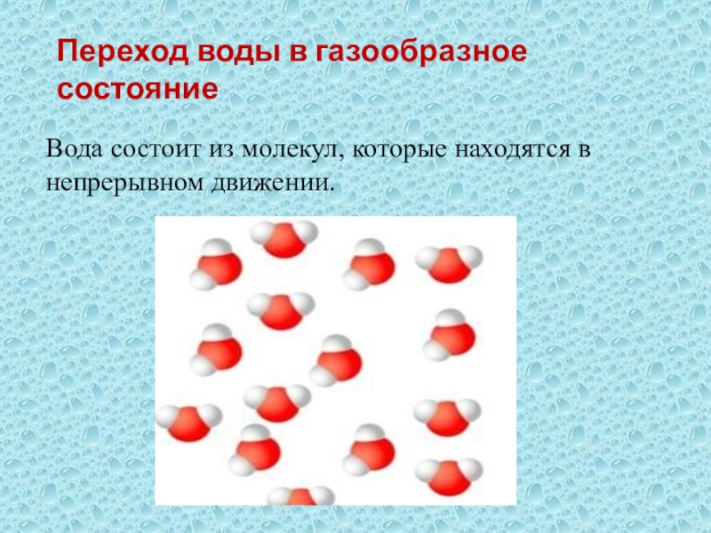 Вода состоит из молекул, которые находятся в непрерывном движении.