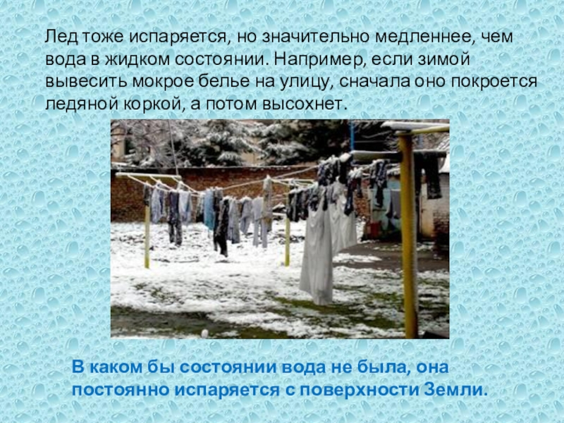 В каком бы состоянии вода не была, она постоянно испаряется с поверхности Земли.