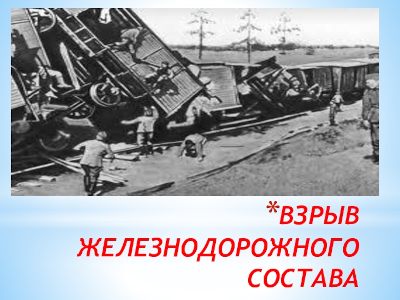 Слайд 11ВЗРЫВ ЖЕЛЕЗНОДОРОЖНОГО СОСТАВА