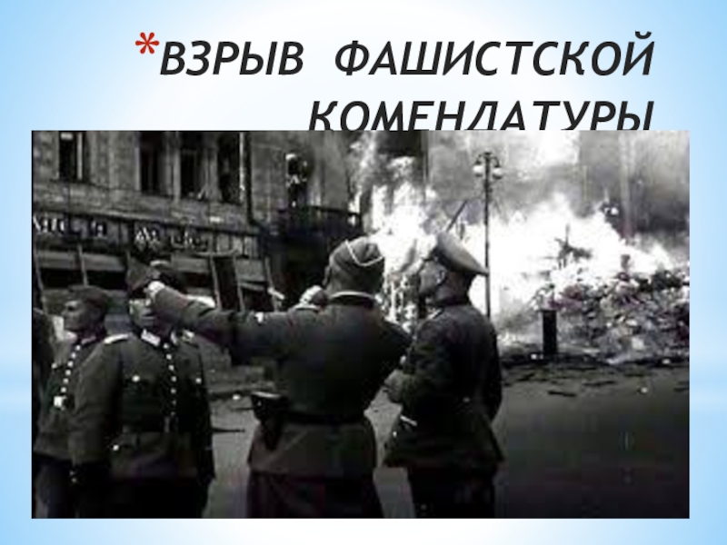 Слайд 13ВЗРЫВ ФАШИСТСКОЙ КОМЕНДАТУРЫ