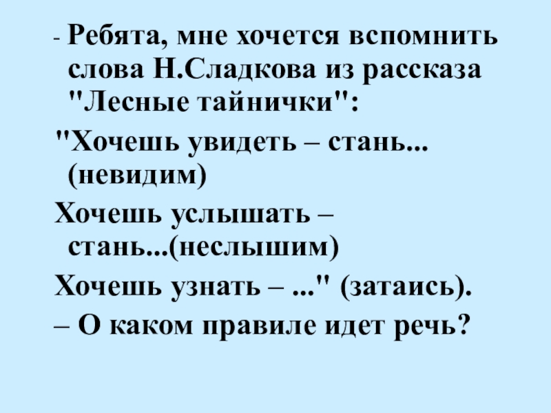в лесу мы будем соблюдать тишину?