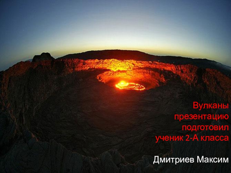 Вулканы  презентацию  подготовил  ученик 2-А класса   Дмитриев Максим