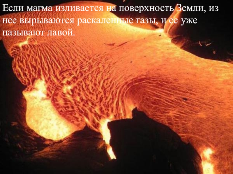 Слайд 7Если магма изливается на поверхность Земли, из нее вырываются раскаленные газы,