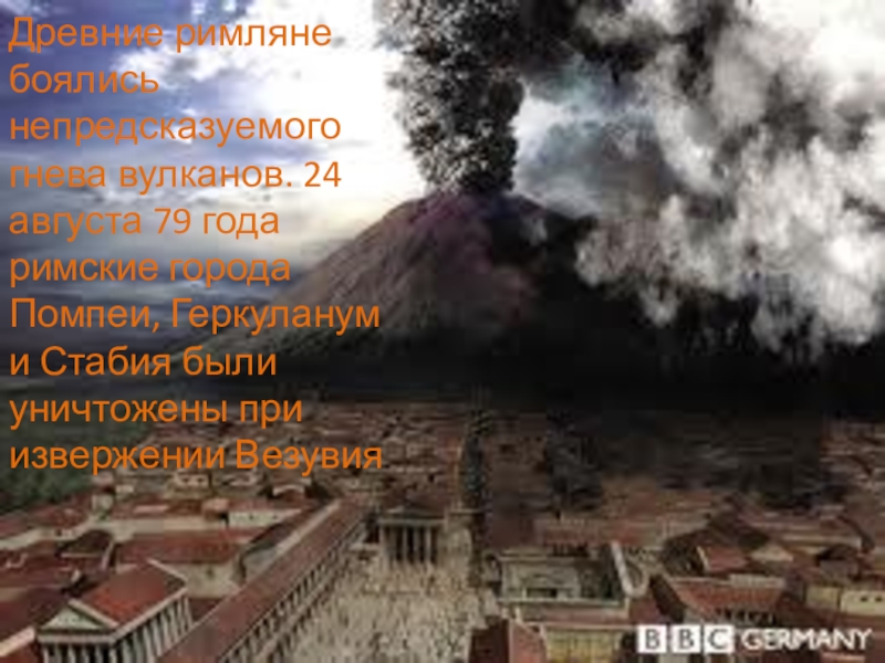 Слайд 5Древние римляне боялись непредсказуемого гнева вулканов. 24 августа 79 года римские