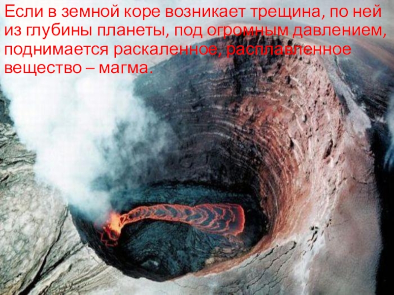 Слайд 6Если в земной коре возникает трещина, по ней из глубины планеты,