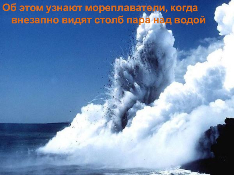 Слайд 30Об этом узнают мореплаватели, когда внезапно видят столб пара над водой