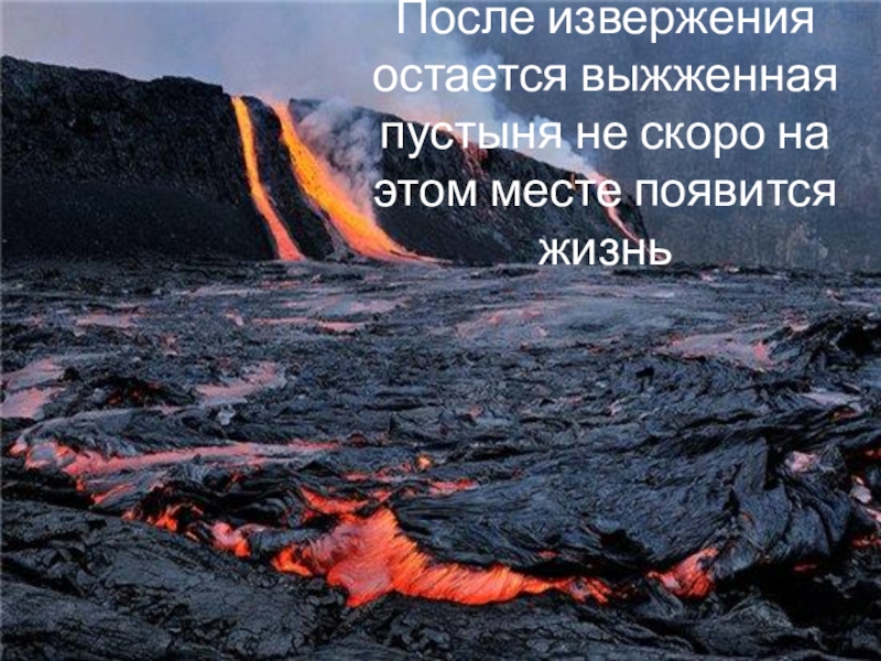 Слайд 22После извержения остается выжженная пустыня не скоро на этом месте появится