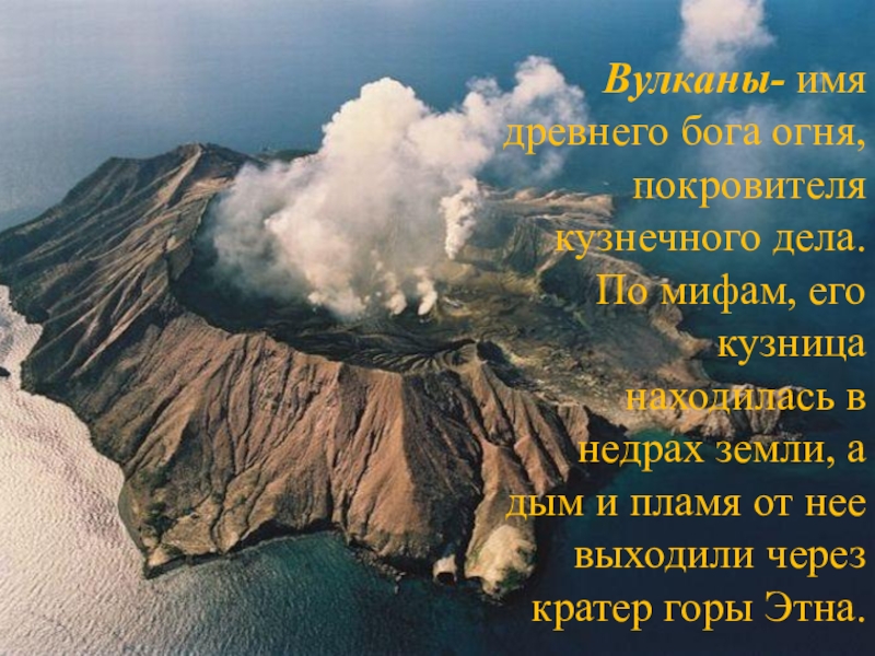 Слайд 3Вулканы- имя древнего бога огня, покровителя кузнечного дела. По мифам, его