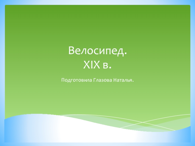 Велосипед. XIX в.Подготовила Глазова Наталья.