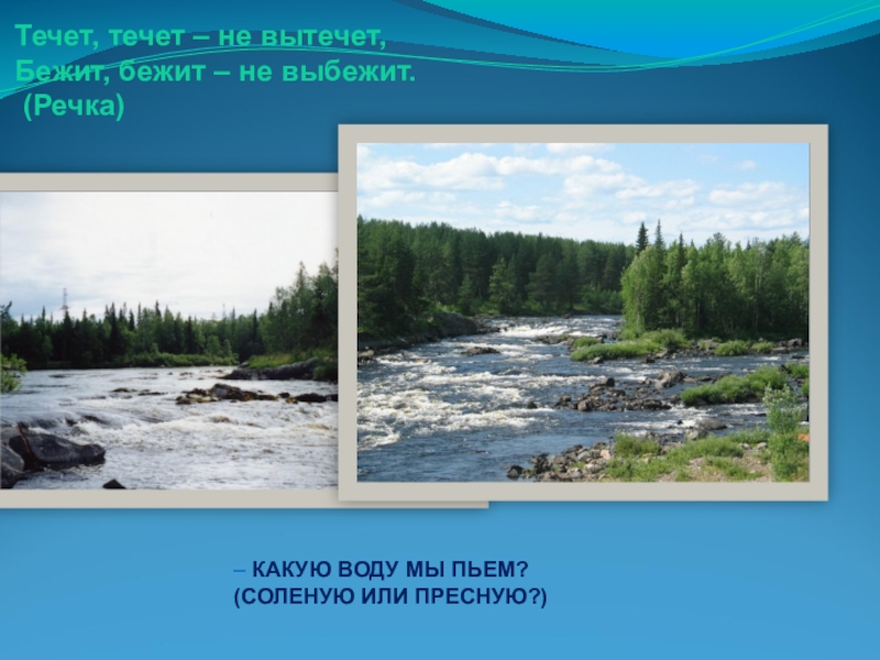 Течет, течет – не вытечет, Бежит, бежит – не выбежит.  (Речка) – КАКУЮ ВОДУ МЫ ПЬЕМ?