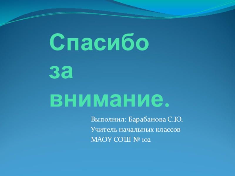 Спасибо за внимание.Выполнил: Барабанова С.Ю.Учитель начальных классовМАОУ СОШ № 102