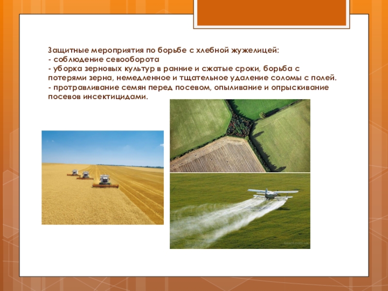Слайд 7 Защитные мероприятия по борьбе с хлебной жужелицей: - соблюдение севооборота -