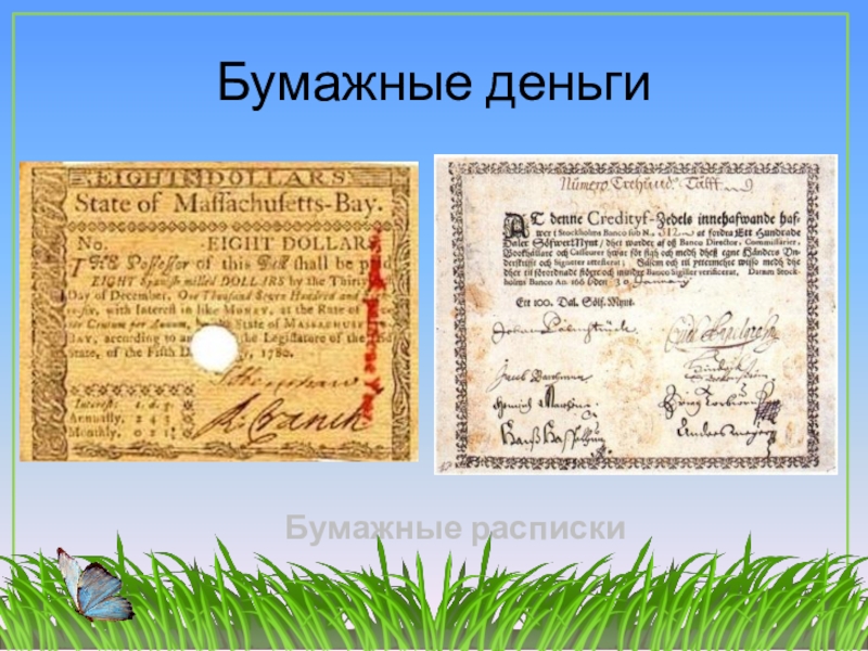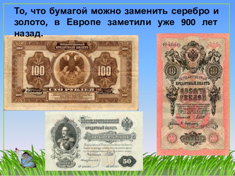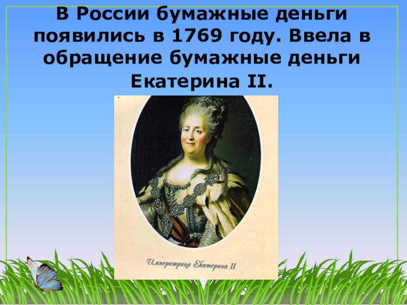 Слайд 31В России бумажные деньги появились в 1769 году. Ввела в обращение