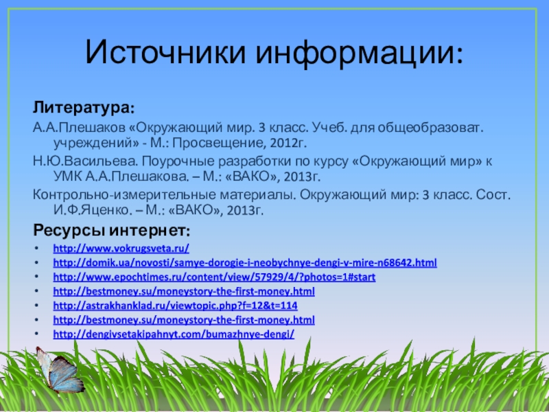 Н.Ю.Васильева. Поурочные разработки по курсу «Окружающий мир» к УМК А.А.Плешакова. – М.: «ВАКО», 2013г.