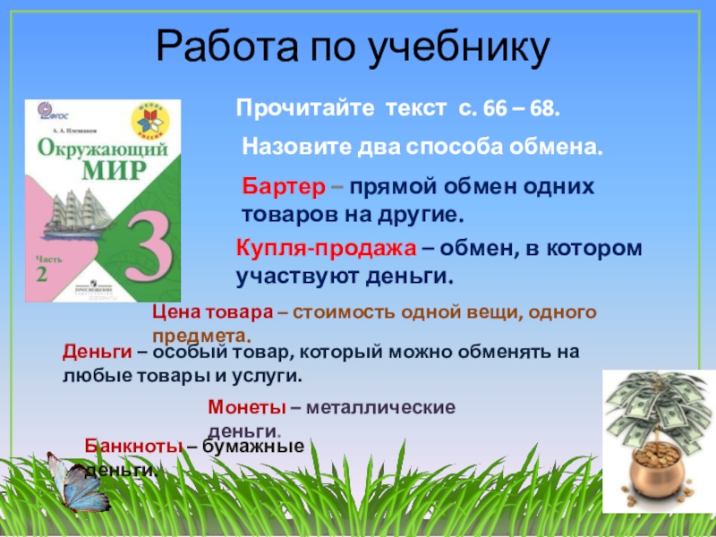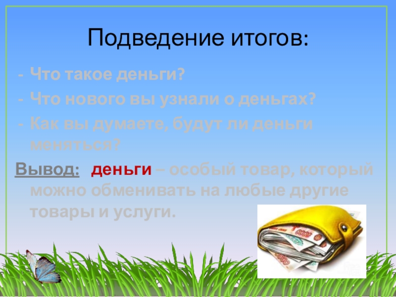 Вывод: деньги – особый товар, который можно обменивать на любые другие товары и услуги.