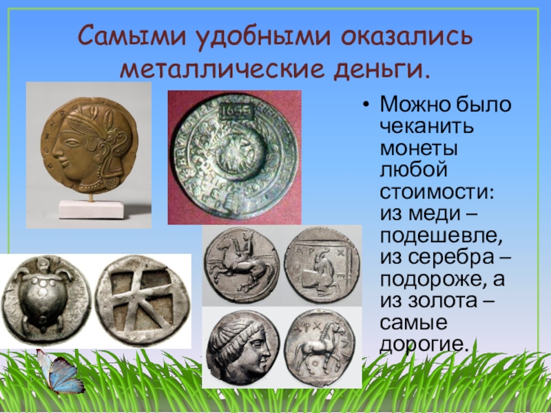 Слайд 23Можно было чеканить монеты любой стоимости: из меди – подешевле, из