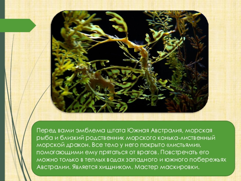Слайд 7Перед вами эмблема штата Южная Австралия, морская рыба и близкий родственник