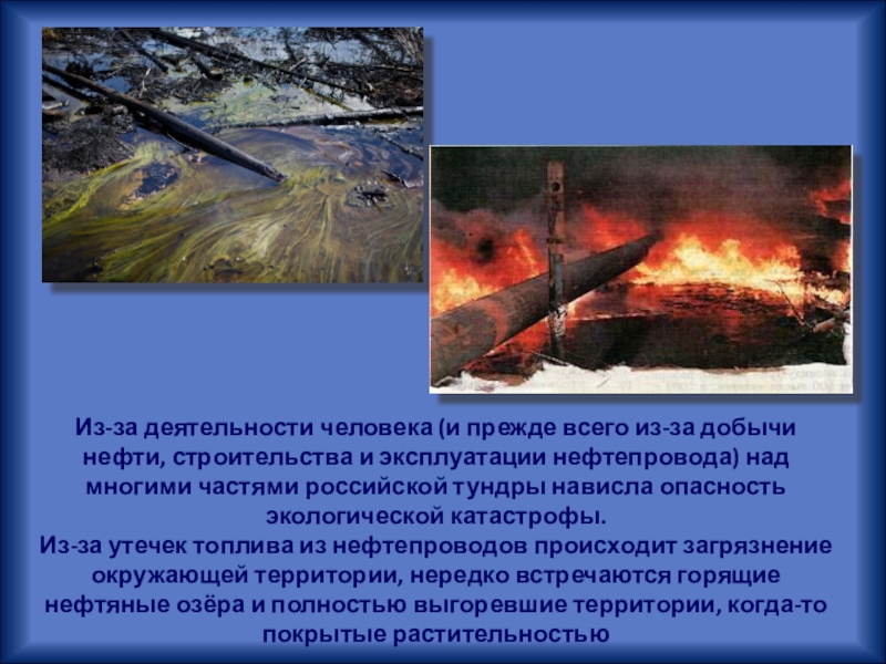 эксплуатации нефтепровода) над многими частями российской тундры нависла опасность экологической катастрофы.