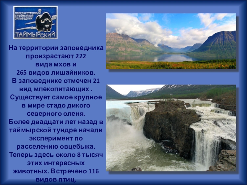 Слайд 27Госуда́рственный приро́дный биосфе́рный запове́дник «Таймы́рский» -