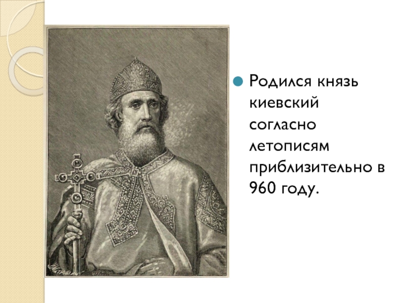 Родился князь киевский согласно летописям приблизительно в 960 году.
