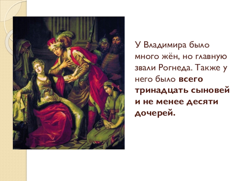 Слайд 6У Владимира было много жён, но главную звали Рогнеда. Также у