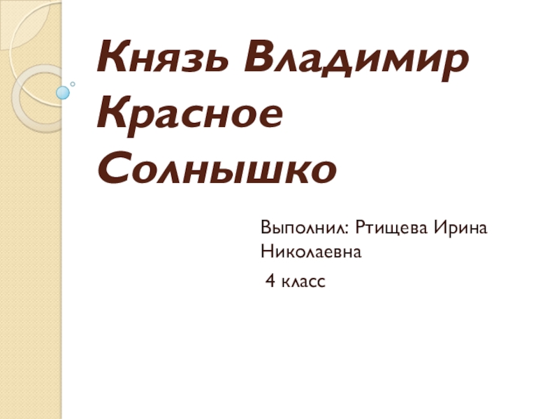Князь Владимир Красное СолнышкоВыполнил: Ртищева Ирина Николаевна 4 класс
