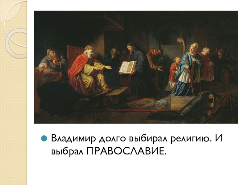 ++++++++++++++Владимир долго выбирал религию. И выбрал ПРАВОСЛАВИЕ.