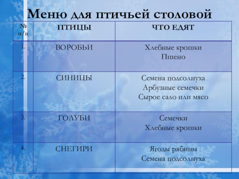 о зимующих птицах.