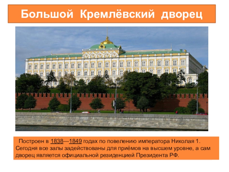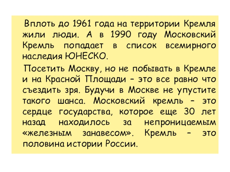 Слайд 39 Вплоть до 1961 года на территории Кремля жили люди.