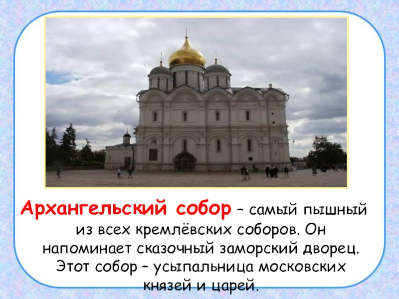 Слайд 23Архангельский собор – самый пышный из всех кремлёвских соборов. Он напоминает