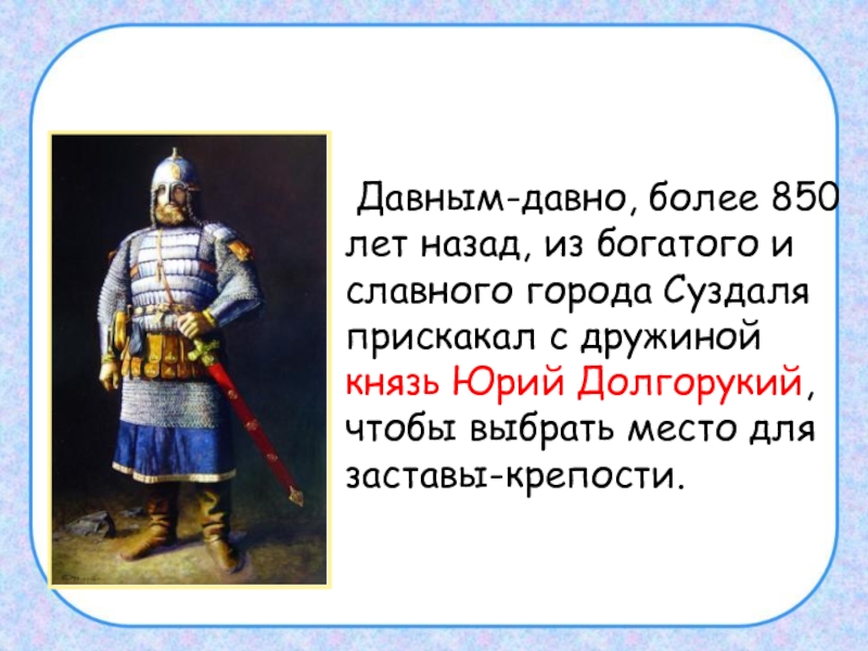 Слайд 7 Давным-давно, более 850 лет назад, из богатого и славного города Суздаля