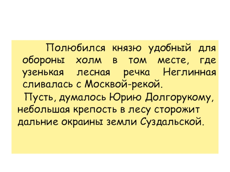 Полюбился князю удобный для обороны холм в том месте, где узенькая